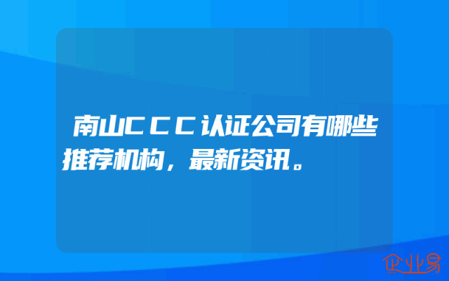- 南山CCC认证公司有哪些推荐机构,最新资讯。