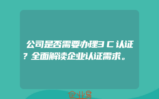 - 公司是否需要办理3C认证?全面解读企业认证需求。