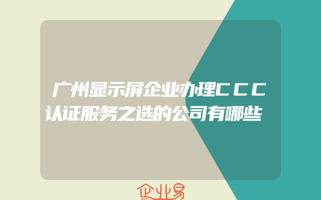 - 广州显示屏企业办理CCC认证服务之选的公司有哪些一、引言随着科技的飞速发展,显示屏行业在中国市场日益壮大。广州作为华南地区的重要经济枢纽,拥有众多显示屏制造企业。为了满足市场准入要求和提升产品质量标准,许多显示屏企业开始寻求专业的C