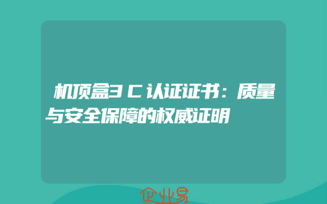- 机顶盒3C认证证书:质量与安全保障的权威证明
