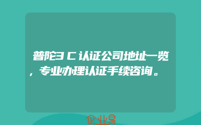 - 普陀3C认证公司地址一览,专业办理认证手续咨询。