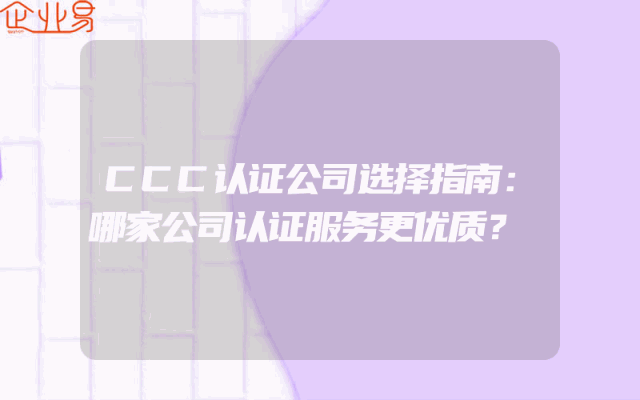 - CCC认证公司选择指南:哪家公司认证服务更优质?