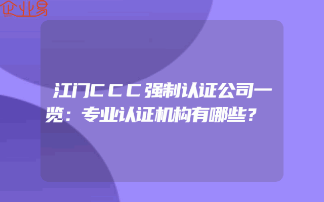 - 江门CCC强制认证公司一览:专业认证机构有哪些?