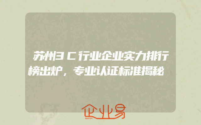 - 苏州3C行业企业实力排行榜出炉,专业认证标准揭秘