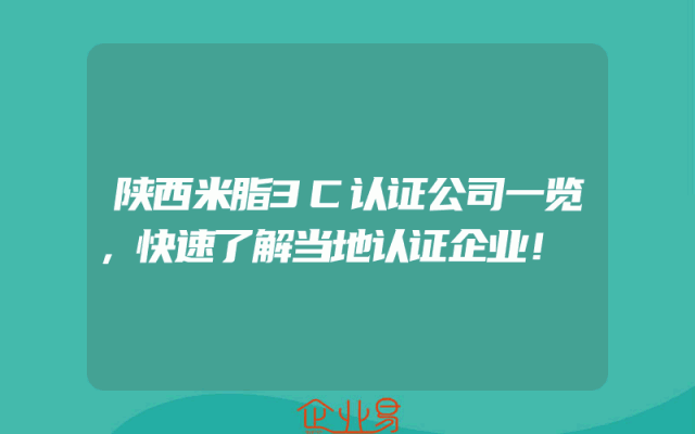 - 陕西米脂3C认证公司一览,快速了解当地认证企业!
