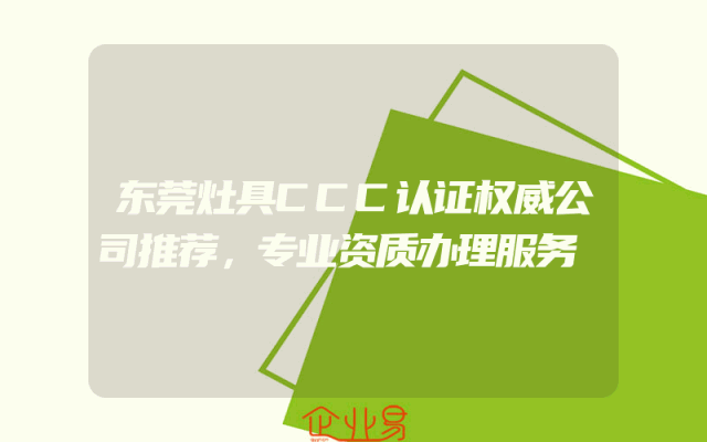 - 东莞灶具CCC认证权威公司推荐,专业资质办理服务