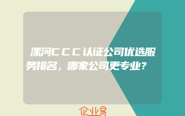 - 漯河CCC认证公司优选服务排名,哪家公司更专业?