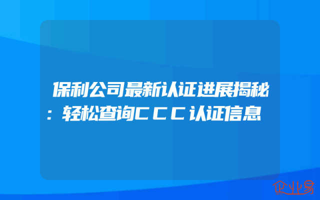 - 保利公司最新认证进展揭秘:轻松查询CCC认证信息