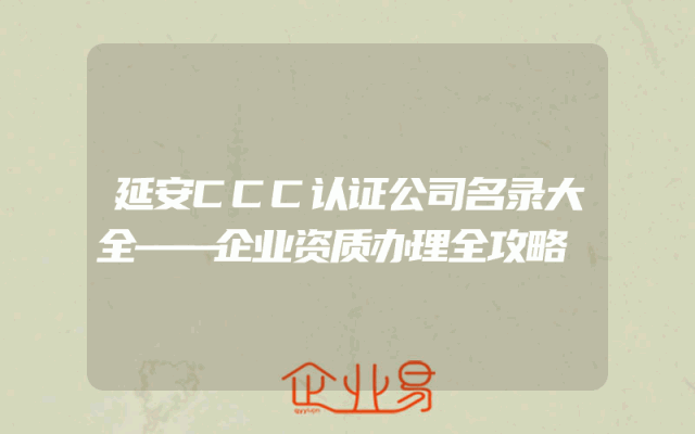 - 延安CCC认证公司名录大全——企业资质办理全攻略