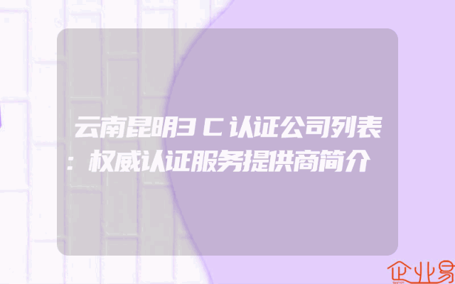 - 云南昆明3C认证公司列表:权威认证服务提供商简介