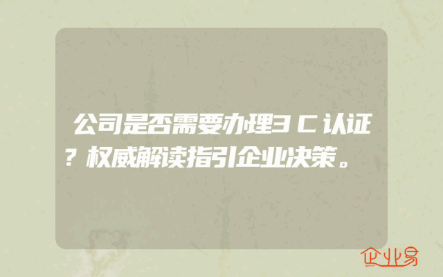 - 公司是否需要办理3C认证?权威解读指引企业决策。