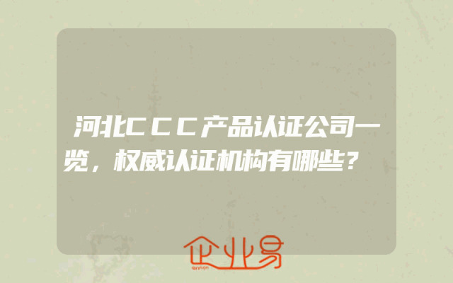 - 河北CCC产品认证公司一览,权威认证机构有哪些?