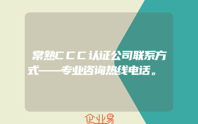 - 常熟CCC认证公司联系方式——专业咨询热线电话。