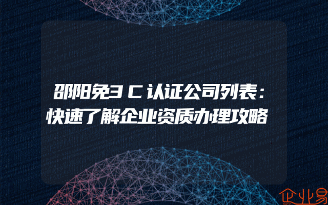 - 邵阳免3C认证公司列表:快速了解企业资质办理攻略