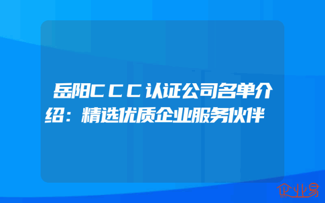 - 岳阳CCC认证公司名单介绍:精选优质企业服务伙伴