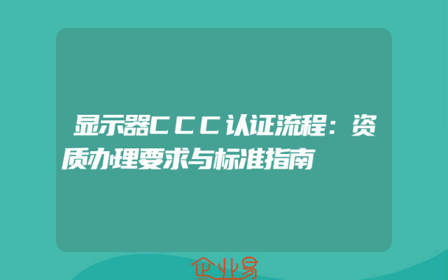 - 显示器CCC认证流程:资质办理要求与标准指南