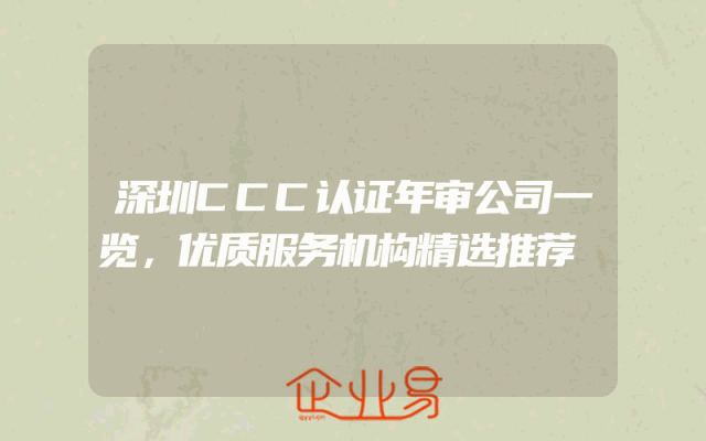 - 深圳CCC认证年审公司一览,优质服务机构精选推荐