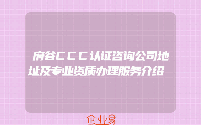 - 府谷CCC认证咨询公司地址及专业资质办理服务介绍