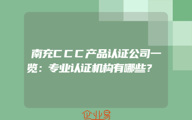 - 南充CCC产品认证公司一览:专业认证机构有哪些?
