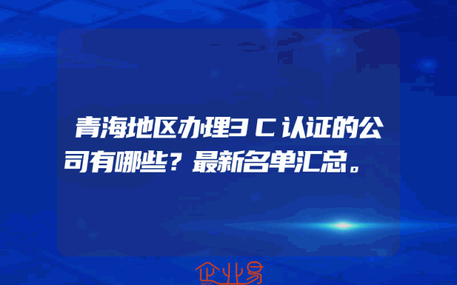 - 青海地区办理3C认证的公司有哪些?最新名单汇总。