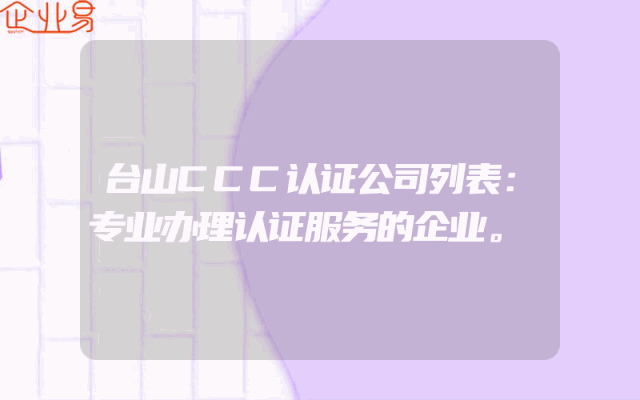 - 台山CCC认证公司列表:专业办理认证服务的企业。