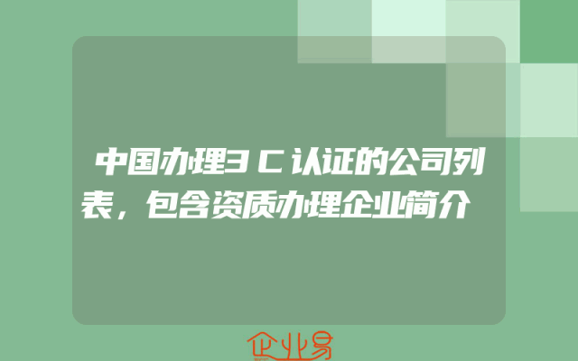 - 中国办理3C认证的公司列表,包含资质办理企业简介