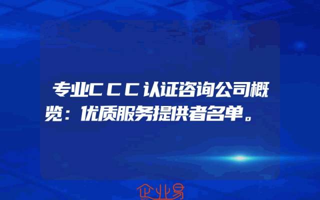 - 专业CCC认证咨询公司概览:优质服务提供者名单。