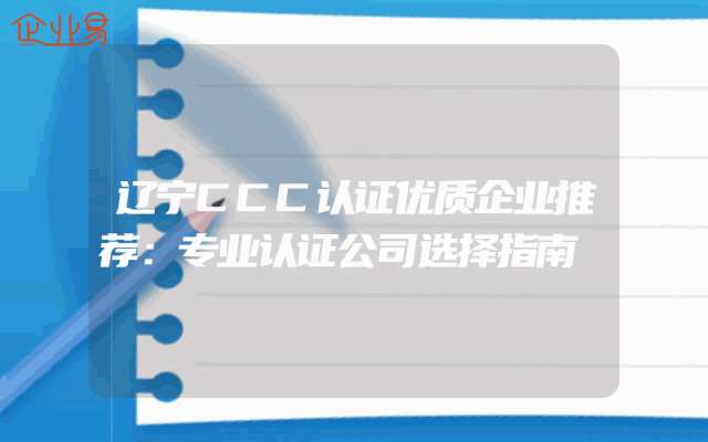 - 辽宁CCC认证优质企业推荐:专业认证公司选择指南