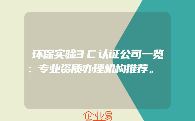 - 环保实验3C认证公司一览:专业资质办理机构推荐。