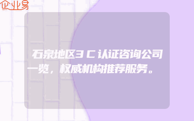 - 石泉地区3C认证咨询公司一览,权威机构推荐服务。