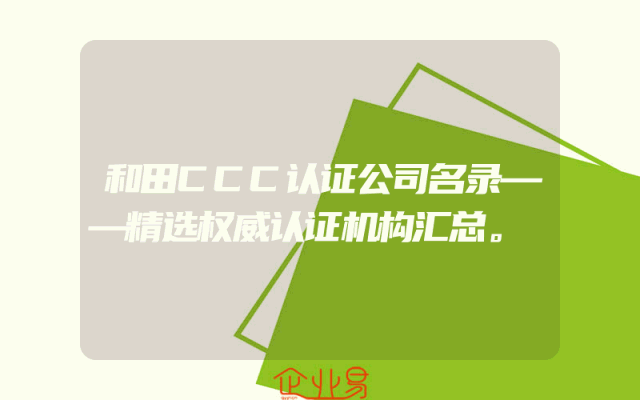 - 和田CCC认证公司名录——精选权威认证机构汇总。