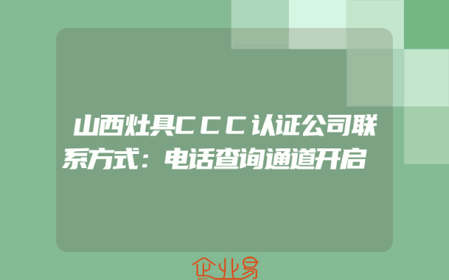 - 山西灶具CCC认证公司联系方式:电话查询通道开启