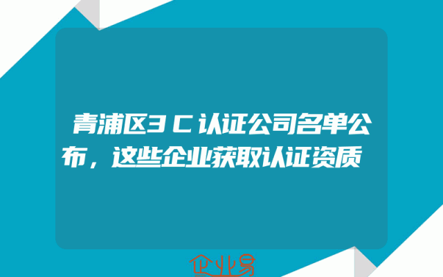 - 青浦区3C认证公司名单公布,这些企业获取认证资质