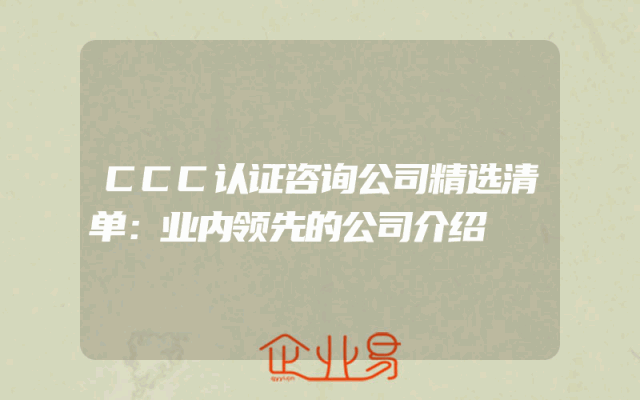 - CCC认证咨询公司精选清单:业内领先的公司介绍