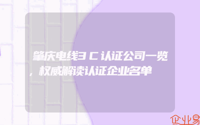 - 肇庆电线3C认证公司一览,权威解读认证企业名单