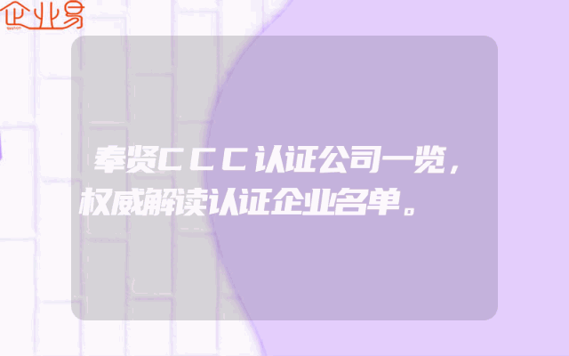 - 奉贤CCC认证公司一览,权威解读认证企业名单。