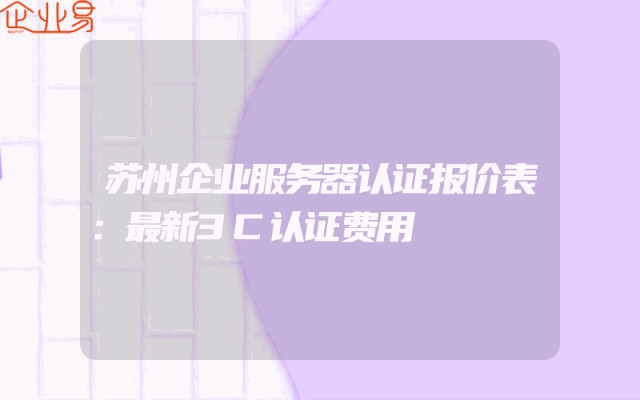 - 苏州企业服务器认证报价表:最新3C认证费用详解随着信息技术的迅猛发展,企业服务器的应用愈加广泛。在苏州地区,众多企业为提升服务品质及市场竞争力,纷纷着手进行企业服务器认证。本文将详细解析苏州地区