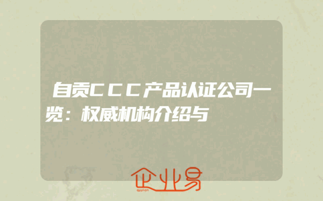 - 自贡CCC产品认证公司一览:权威机构介绍与