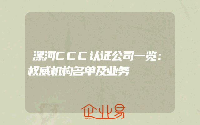 - 漯河CCC认证公司一览:权威机构名单及业务