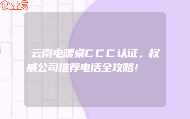 - 云南电暖桌CCC认证,权威公司推荐电话全攻略!
