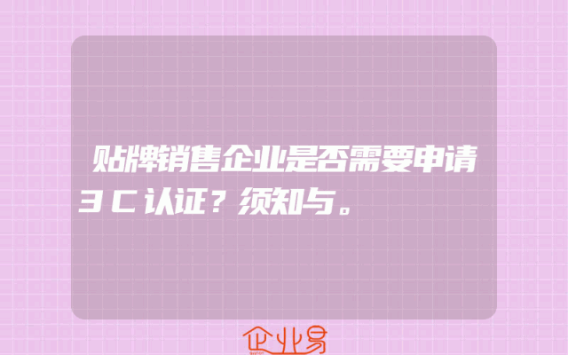 - 贴牌销售企业是否需要申请3C认证?须知与。