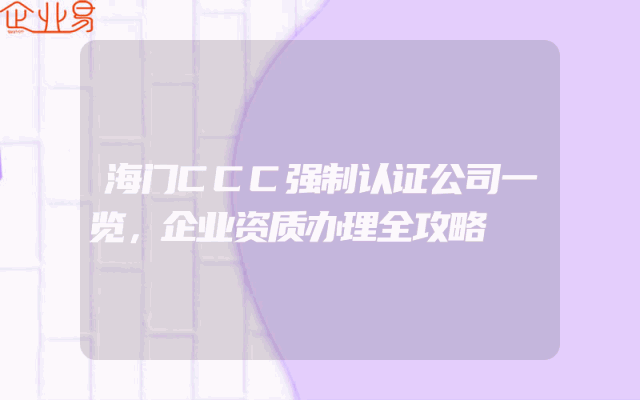 - 海门CCC强制认证公司一览,企业资质办理全攻略