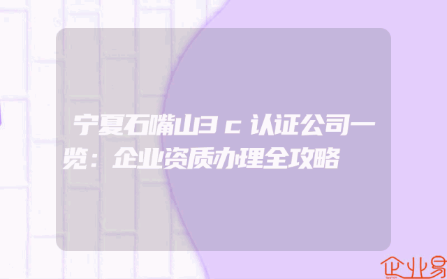 - 宁夏石嘴山3c认证公司一览:企业资质办理全攻略