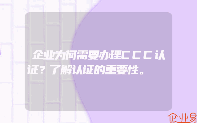 - 企业为何需要办理CCC认证?了解认证的重要性。