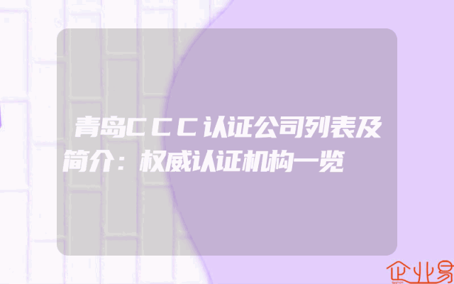 - 青岛CCC认证公司列表及简介:权威认证机构一览