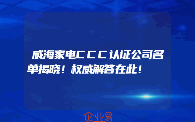 - 威海家电CCC认证公司名单揭晓!权威解答在此!