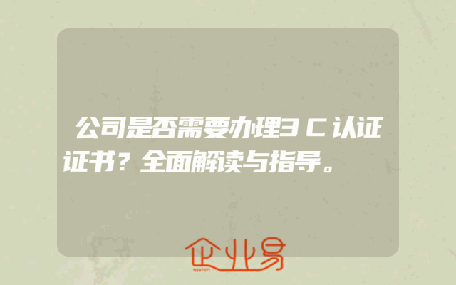 - 公司是否需要办理3C认证证书?全面解读与指导。