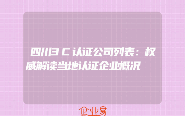 - 四川3C认证公司列表:权威解读当地认证企业概况