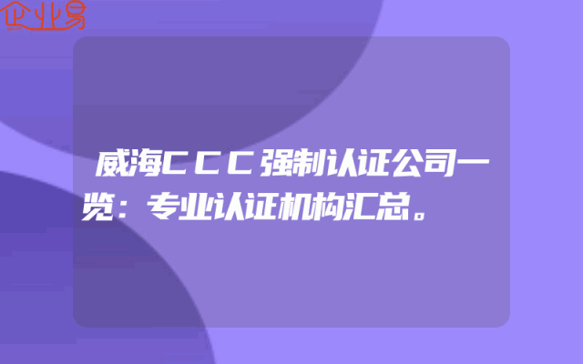 - 威海CCC强制认证公司一览:专业认证机构汇总。