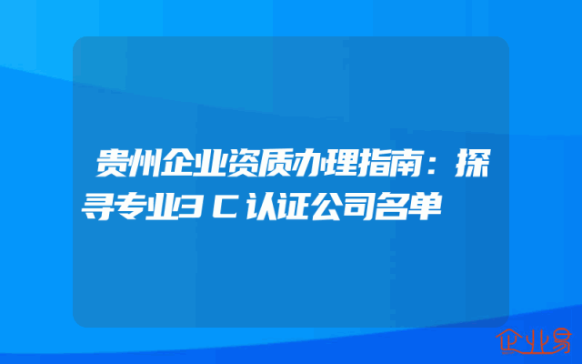 - 贵州企业资质办理指南:探寻专业3C认证公司名单
